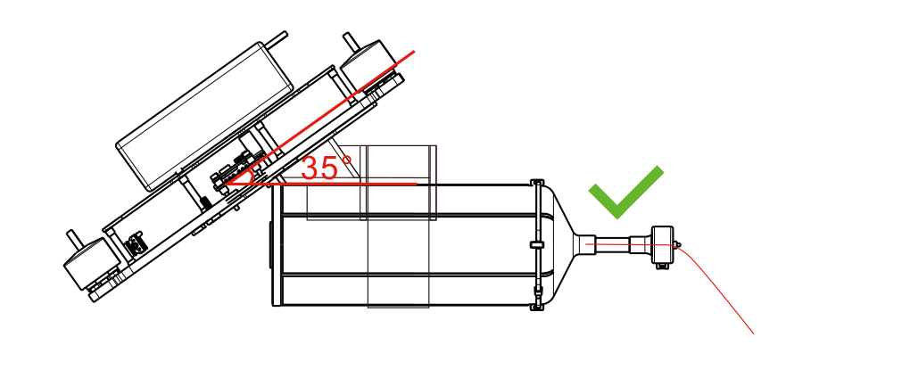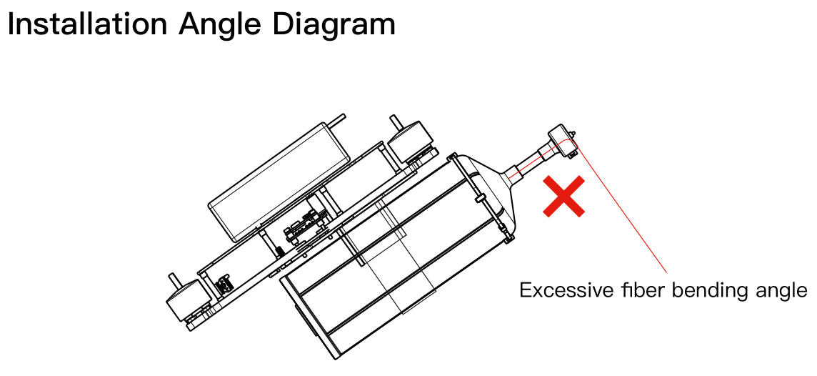 Instalace optického disku vlákna by měla být založena na úhlu náklonu letadla, montážní konzola by měla být vyhrazena pro určitý úhel (jak je znázorněno na obrázku). Instalace Montážní úhel by měl být blízko úhlu náklonu, takže úhel výstupu z optického disku vlákna je vodorovný.